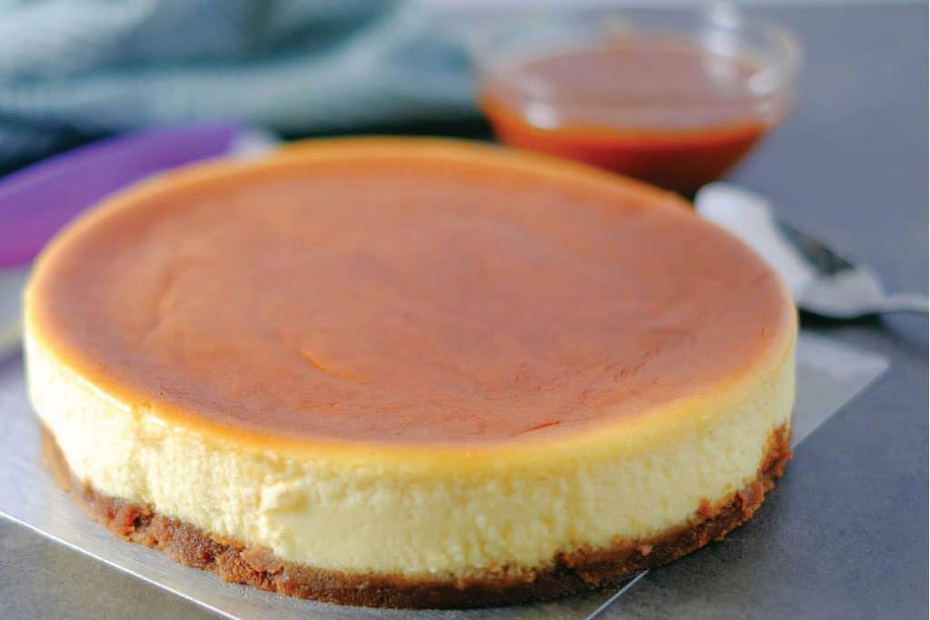 I love making cheesecakes and this Baked Caramel Cheesecake is one my favorites. It’s a no-fuss, creamy, sweet dessert that everyone will love. I remember baking this for my brothers and it’s gone in a matter of seconds. The caramel sauce on top provides the cheesecake with extra richness and character.