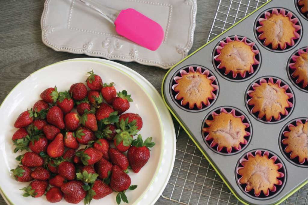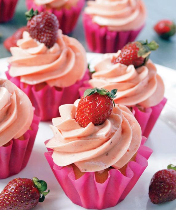 - Pipe the frosting or spread frosting over cupcakes. Decorate with fresh strawberries.